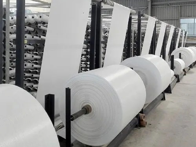 - Изготовление полипропиленового полотна. С помощью круглоткацких станков изготавливаются полотна заданной плотности и ширины.
